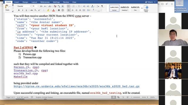 ecs36b_zoom 04/09/2020 Class Discussion (covering informally about HW#2)