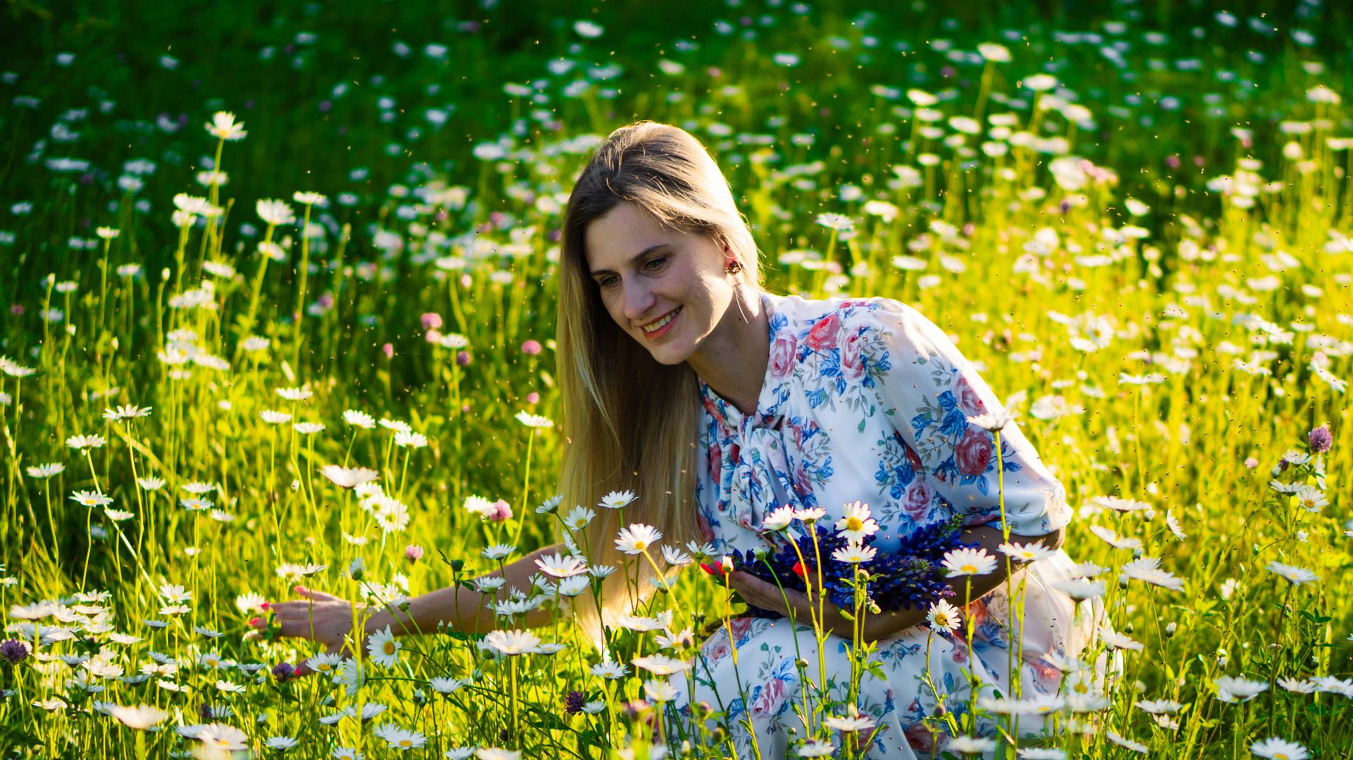 Прекрасная девушка на фотосессии в ромашках