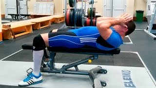 Мой сайт: Твой Тренер - http://tvoytrener.com Магазин спортивного питания: https://tvoypit.com Заказать индивидуальный комплекс упражнений: http://tvoytrener.com/sotrydnichestvo/kompleks_upragnenii.php Вес и количество повторений для новичков Для мужчин: 10 - 12 повторений 3 - 5 кг. 2 - 3 подхода. Для женщин: 10 - 12 повторений 2 - 4 кг. 2 - 3 подхода. Ограничения при травмах/болезнях/болях Степень риска указана по 10-ти бальной шкале Боль в шее 6 (можно попробовать) Грыжа или протрузия в шее 5 (можно попробовать) Шейный остеохондроз 3 (можно попробовать) Описание упражнения Разгибать и сгибать шею необходимо по полной амплитуде, но довольно медленно и никаких резких движений. Для начала вам вполне хватит диска в 2.5 кг. В общем, вес должен быть такой, чтобы вы могли сделать как минимум 10 раз. Основные фишки 1. Как правило, выполняют это упражнение с диском на лбу. Можно также попросить товарища давить руками вам на лоб. А если нет ни дисков, ни товарищей, то можно самому тянуть себя вниз. Для этого подойдёт обычное полотенце, которое вы кладёте себе на лоб и тянете руками вниз за края. 2. Для начала вполне хватит 2.5 – 5 кг. Если вы раньше не тренировали шею, то этого веса будет достаточно. 3. Опускать и поднимать голову нужно по полной амплитуде. Однако делать это нужно плавно. Слегка задерживаясь в верхней точке. 4. Не нужно качать шею каждый день. Вполне достаточно тренировать её 1 – 2 раза в неделю. Причём желательно делать не только сгибание шеи, но и разгибание. Чтобы не было мышечного дисбаланса. 5. Ложиться на лавку надо так, чтобы она не мешала полностью опускать голову вниз.