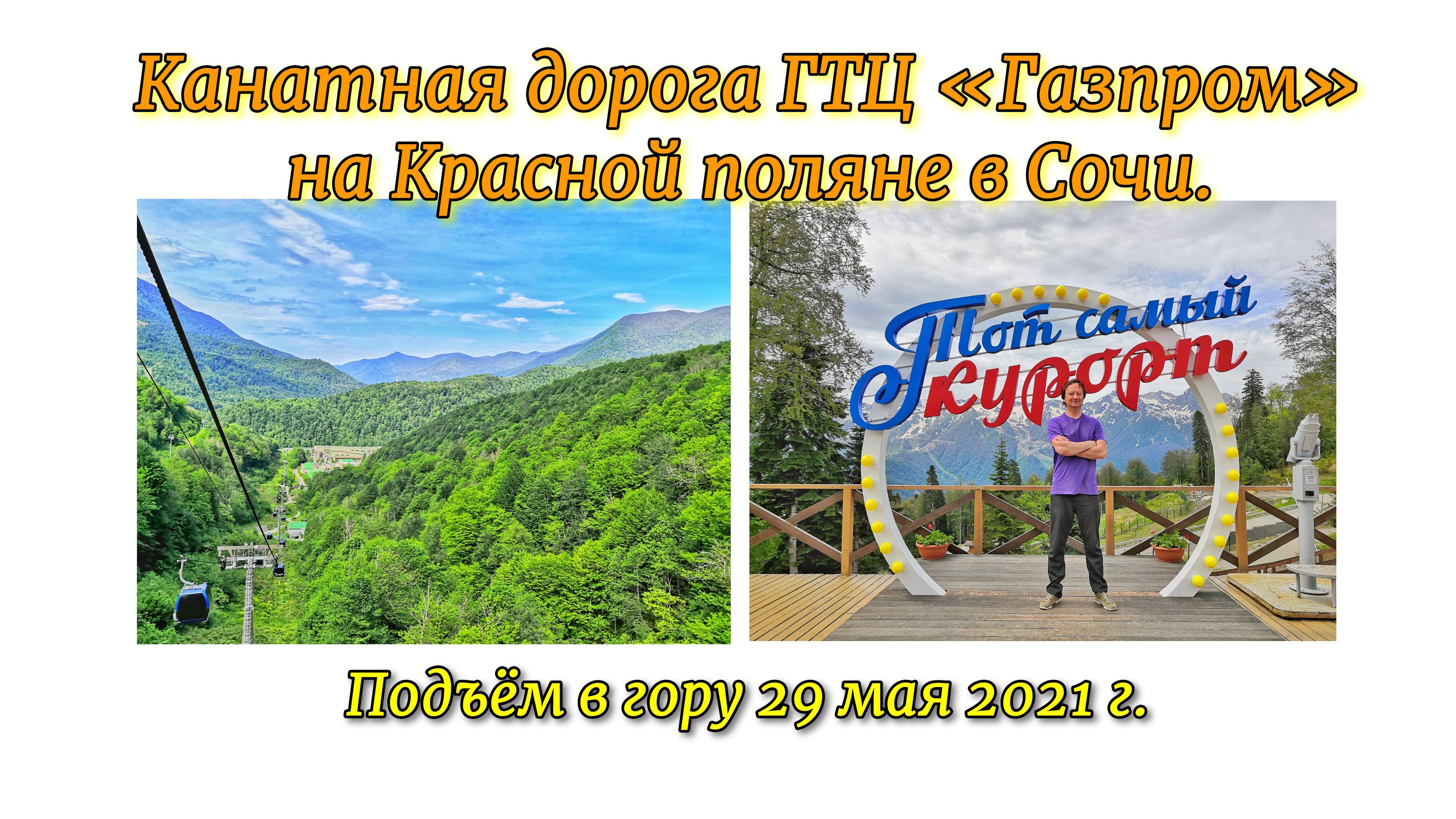 Канатная дорога ГТЦ «Газпром» на Красной поляне в Сочи. Подъём в гору 29 мая 2021 г.