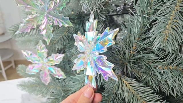 Набор ёлочных украшений СНЕЖИНКИ ЛОРЕНСОЛЬ, акрил, радужный перламутр, 13 см, 3 шт., AKP100230-набор