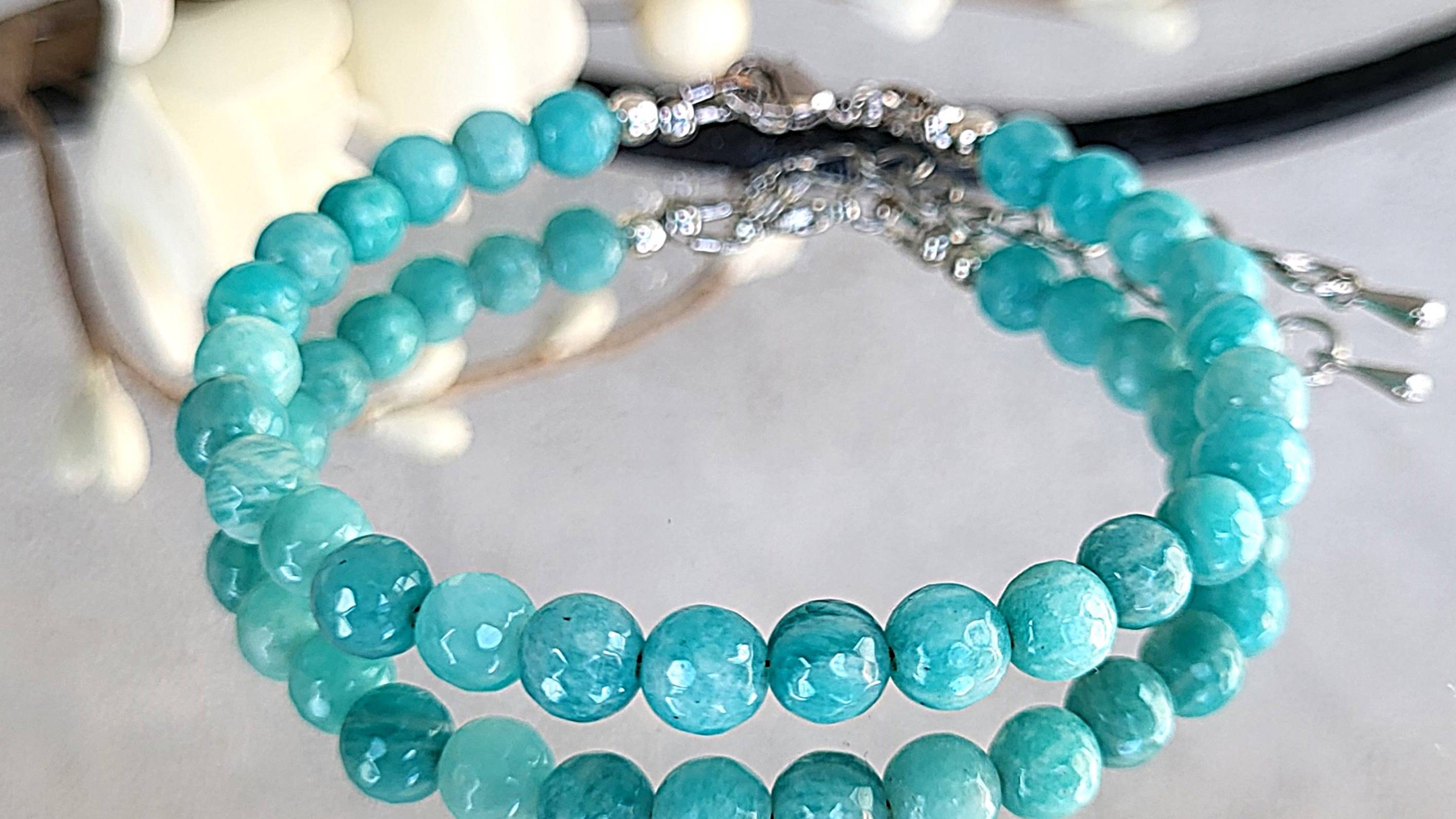 Браслет украшения из натуральных камней. Браслет из амазонита: амазонит шарик 6 мм. ювелирная огранка, длина 18-23 см. (на запястье от 15 см.)