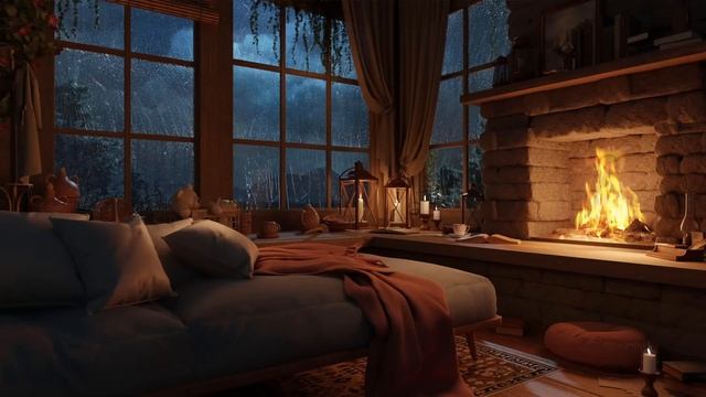 Шум дождя и грозы за окном уютного дома с камином 🔥 Глубокий сон, учеба и расслабление