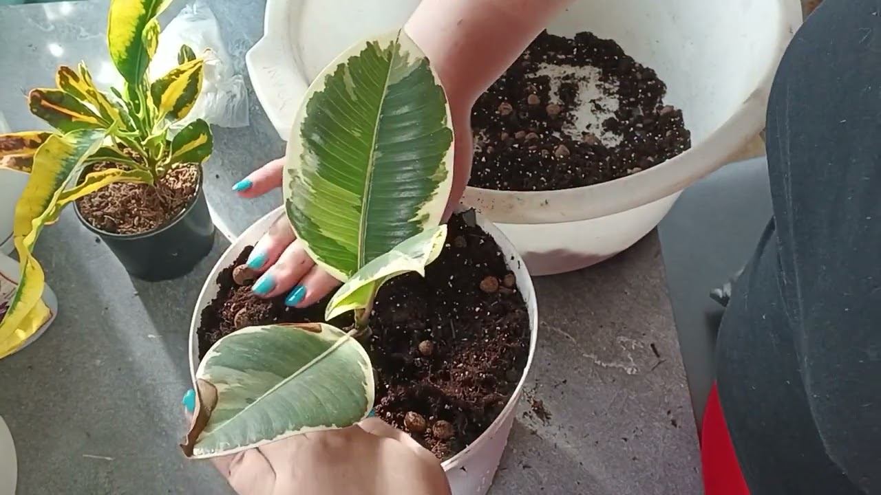 Пересадка фикуса Тинеки и кротона Гуаямбо ( мамми желтая)