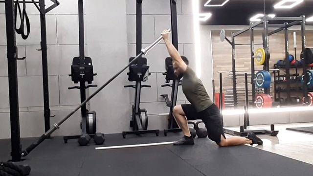 Жим лэндмайн на колене с дотягиванием