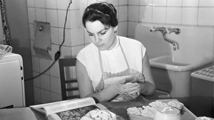 Редкие фото советских актеров, готовящих еду на своих кухнях.