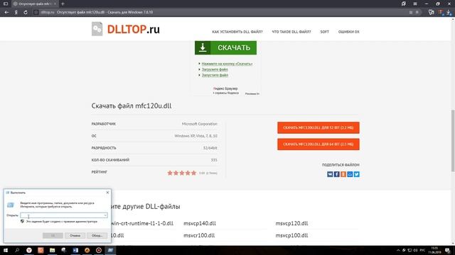 Как скачать файл mfc120u.dll чтоб исправить ошибку?