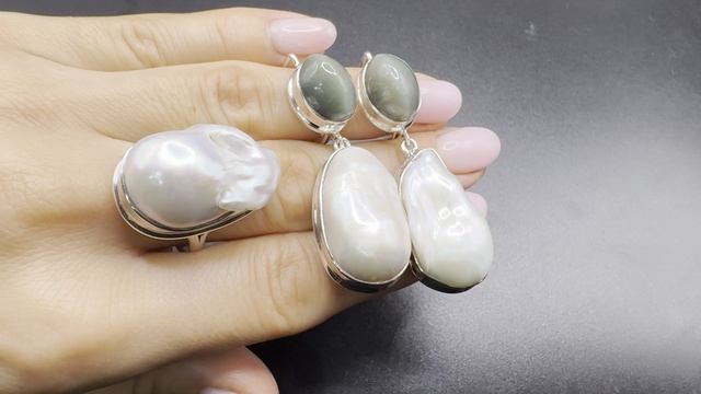 Комплект с барочным жемчугом и кошачьим глазом ЖЕМ065
