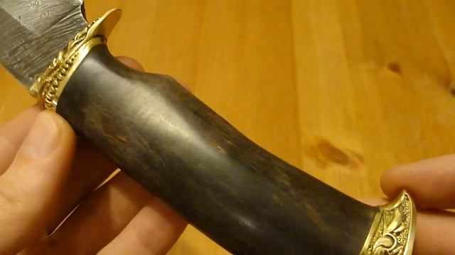 Peilis "Ochotnik 2" iš damasko plieno su unikaliu ašmens raštu, jis gali būti gera dovana žmogui, kuris vertina kokybę ir grožį. Rankena pagaminta iš tvirtos medienos - karelijos beržo ir buožė turi kilpą virvei. O dėklas pagamintas iš tvirtos, natūralios odos užtikrins saugų nešiojimą. Ašmens ilgis: 13,5cm Bendras ilgis: 26,5cm Ašmens storis: 3mm Svoris su dėklu: 299 g Svoris be dėklo: 211 g Kietumas: 60-62 HRC Rankenos medžiaga: karelijos beržas Rankena papuošta liejimu iš žalvario su gražiu raštu. Plienas sudarytas iš skirtingų plienų markių: ШХ-15, ХВГ, У8А Pagaminta: Rusijoje http://www.blockpost.lt/ataka-peilis-ochotnik-damasko-plieno-p-3501.html Нож "Охотник 2" из дамасской стали Длина лезвия: 13,5cm Общая длина: 26,5 см Толщина лезвия: 3мм Твёрдость: 60-62 HRC Вес ножа: 211 г Вес c чехлом: 299 г Материал рукояти: стабилизированная карельская берёза Рукоять с декорированным литьём из латуни. Пятка рукояти имеет петлью для верёвки. Сталь состоит из различных сталей: ШХ-15, ХВГ, У8А Knife "Ochotnik 2" of Damascus steel Blade length: 13,5cm Overall length: 26,5 cm Blade Thickness: 3mm Weight: 299 gr 60-62 HRC Material handle: karelian birch The handle is decorated with a nice patterns and has hole for rope. Steel is made up of different steels: ШХ-15, ХВГ, У8А