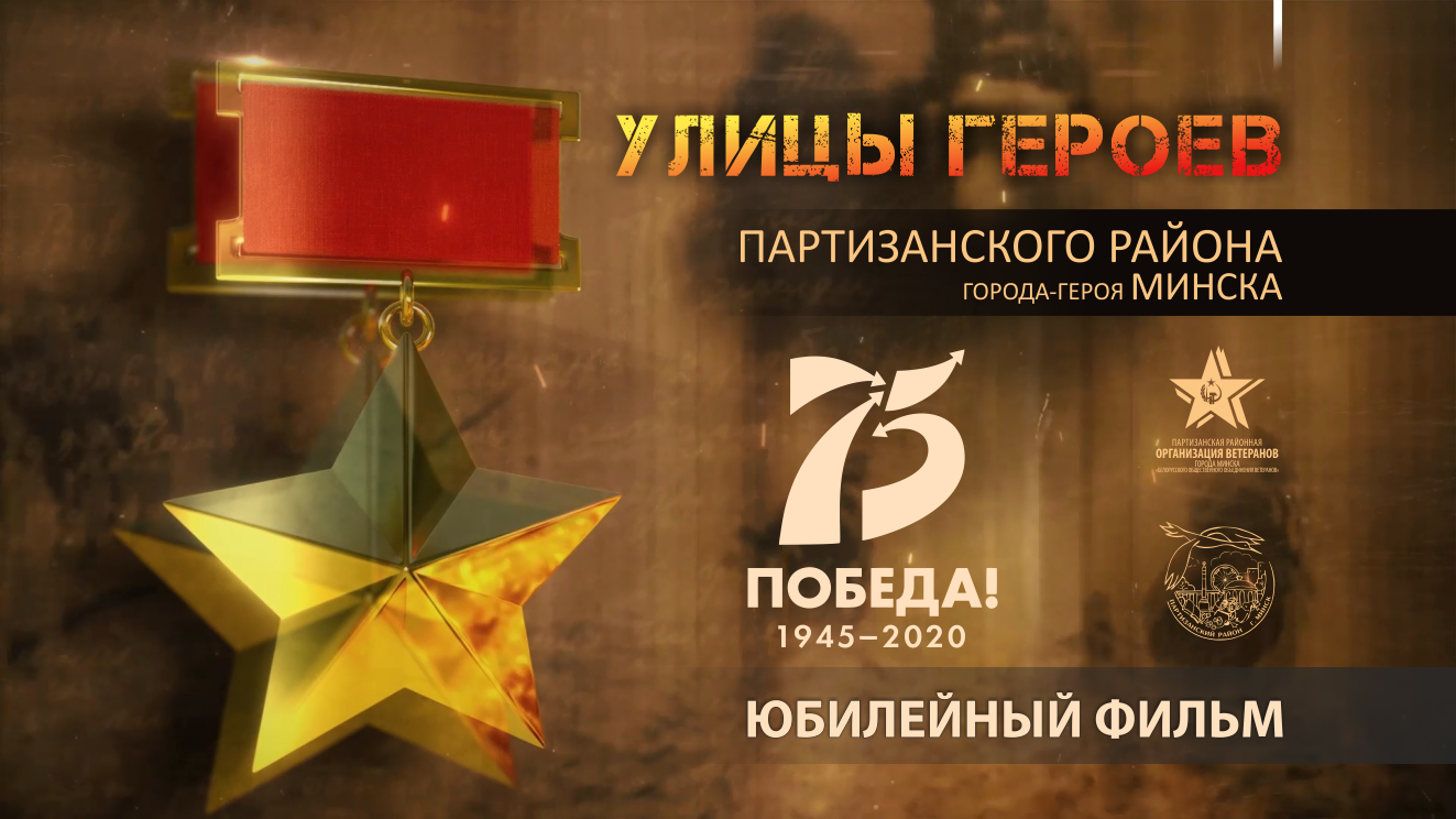 Юбилейный фильм к 9 мая 2020 года – 75-летию Великой Победы в Отечественной войне. «Улицы героев» Партизанского района города-героя Минска. Фильм содержит: 6 улиц героев советского союза – мирная жизнь сегодня и воспоминание подвига героев, именами которых названы улицы Партизанского района 5 ветеранов великой отечественной войны – ныне живущие, каждый со своей судьбой, историей 4 поколения , соединённых в фильме 3 диктора – девочки, ученицы гимназии №7 г. Минска 2 музыканта – мальчики, ученики школ Партизанского района 1 единственный живущий ныне герой СССР в Партизанском районе Фильм снят в честь 75-летия Великой Победы. По заказу Партизанской районной организации ветеранов г. Минска Белорусского общественного объединения ветеранов. При поддержке Администрации Партизанского района г. Минска. Видеостудией «Зинар». Что мы сумели принять от поколения наших отцов и дедов?... И что передаём нашим детям и внукам?... Это их Великая Победа… которая стала нашей! Задачи фильма: - соединить 4 поколения – от героев, прадедов до тех людей, кто сегодня обретает в себе ценность Отечества и значение Великой Победы – правнуков, внуков, детей… каждого из нас… - погрузить зрителя в атмосферу некоторых сегодняшних улиц Партизанского района города Минска, названных именами героев: красота, мирная жизнь, весна… - раскрыть имена и подвиги некоторых героев Советского союза, именами которых названы улицы Партизанского района Специально для фильма создана 3D-графика со Звездой героя СССР. Студия «Зинар» выражает искреннюю благодарность за максимальное содействие: - Партизанской районной организации ветеранов г. Минска Белорусского общественного объединения ветеранов и лично Регине Степановне Романовской - Администрации Партизанского района г. Минска - Главе Администрации Партизанского района г. Минска Вороницкому Валерию Викторовичу - ГУО «Гимназия №7 г. Минска», учащимся гимназии (принявших участие в эпизодических ролях) и лично Татьяне Евгеньевне Дисько, Ларисе Леонидовне Смагиной - Хранителю комнаты боевой славы «Юные защитники Отечества», гимназия №7 г. Минска Владимиру Васильевичу Вавуло - Средней школе №182 г. Минска имени Владимира Карвата, учащимся школы (принявших участие в эпизодических ролях) и лично Владиславу Владимировичу Крайнову, Татьяне Иосифовне - Дикторам девочкам – Софии Базык, Нине Горбачёвой, Алине Суходольской - Анне Александровне Браневич (Кустовой), дочери героя СССР Ивана Ильича Кустова и вравнучкам героя Сашеньке и Машеньке Браневич (учащиеся 3 «А» класса СШ №182) - Михаилу Михайловичу Янчуку (учащийся 5 «Г» класса СШ №182), балалайка и его маме Дарье Ивановне - Даниилу Дмитриевичу Коржику (учащийся музыкальной школа №8), баян - Студии звукозаписи «ShoomRoom», г. Минск и лично звукорежиссёру Александру - Тенгизу Думбадзе за предоставленные видео материалы - Ирина Сергеевне Жуковой, БРСМ за предоставленные видео материалы - Порталу «Память народа» Министерства обороны Российской Федерации (https://pamyat-naroda.ru/) за предоставленные архивные документы - Жителям Партизанского района г. Минска, столь органично живущим в кадрах фильма. От всей души благодарим ветеранов Великой отечественной войны, принявших участие в фильме: ЛЕВ СЕМЁНОВИЧ ШЕЙНКМАН ВИКТОР ФЁДОРОВИЧ КОСТКО АЛЕКСАНДР ФЁДОРОВИЧ ШЕРШАВИН ЛИДИЯ КОНДРАТЬЕВНА ВОЛКОВА ВАСИЛИЙ 