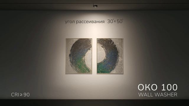 Око 100 — профессиональный светодиодный светильник-волвошер (wall washer) для создания равномерного заливающего освещения стен. Эффект асимметричного светораспределения достигается за счёт специальной оптики с углом рассеивания 30°×50°. Светильник позволяет эффективно решать ключевые задачи: снижение слепящего эффекта благодаря отражённому свету и визуальное расширение пространства за счёт равномерного освещения вертикальных поверхностей. Основу прибора составляют энергоэффективные светодиоды Bridgelux мощностью 15 Вт с высоким индексом цветопередачи (CRI ≥90) и выбором цветовой температуры 3000K или 4000K. Для интеграции в комплексные системы светильник поддерживает управление по протоколам 1-10В и DALI, а также беспроводные технологии Zigbee и Casambi.