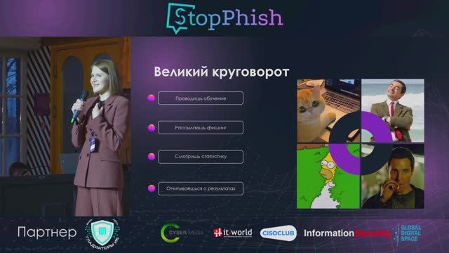 Доклад о том, почему классическая схема Security Awareness «обучили → разослали фишинг → посмотрели статистику» перестаёт работать и что с этим делать на практике. Александра показывает, как перейти от принуждения и контроля к живой киберкультуре, где сотрудники не боятся ИБ-службу и не воспринимают обучение как наказание. В основе подхода — формула: доверие + интерес = осознанность. В докладе разбираются конкретные шаги: анализ аудитории и реального уровня знаний, построение «бренда ИБ» внутри компании, отказ от карательной роли и фокус на помощи. Отдельное внимание уделяется инструментам вовлечения — юмору, мемам, Telegram-каналам и ботам, геймификации, мерчу и креативным фишинговым рассылкам, которые сотрудники открывают не из-под палки, а из любопытства. Отдельный акцент — на практичности: обучение безопасности в контексте личной жизни сотрудников и их близких, а не только рабочих процессов. Результат такого подхода — рост числа репортов реальных атак и формирование среды, где безопасность становится привычкой, а не формальной обязанностью.