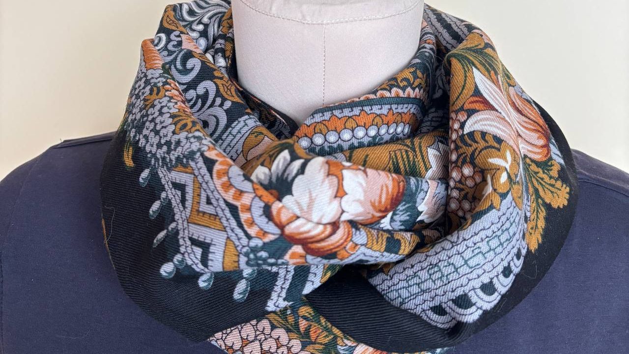 Отличная идея для подарка на любой праздник! Снуд сшит из чистошерстяного павловопосадского платка "Бархатная ночь". Размер снуда: 132 см - длина окружности, 30 см- ширина Снуд будет в фирменный павловопосадский пакет.