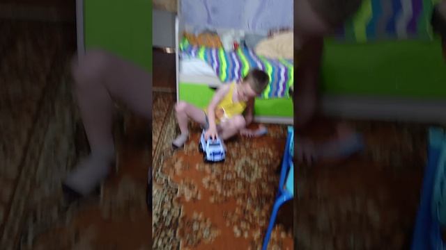 Мы с сыном катаем машину.