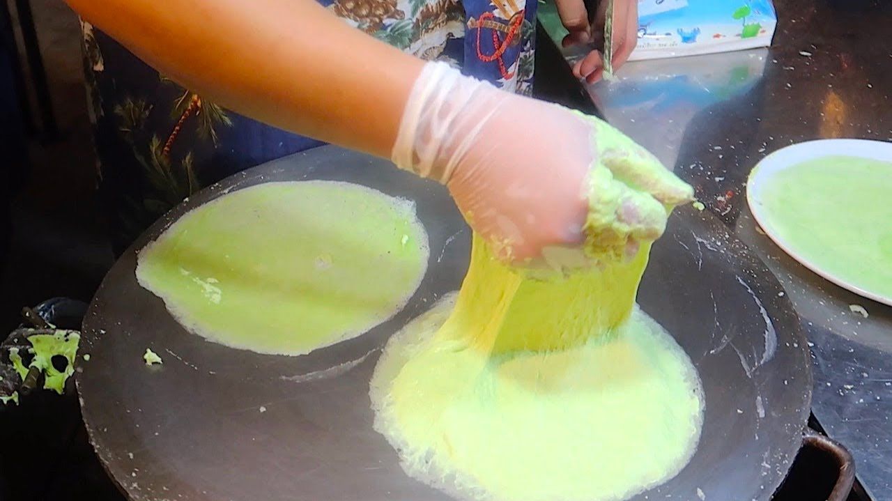 Зелёная попиа (китайские блинчики с начинкой из бумаги) - тайская уличная еда
