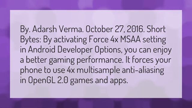Force 4x MSAA • What does Force 4x MSAA mean? ---------- Our mission is informing people correctly. This video was also made on the basis of these guidelines. In order to fully present the topic, it may be necessary in some cases to include details that may be objectionable to some.