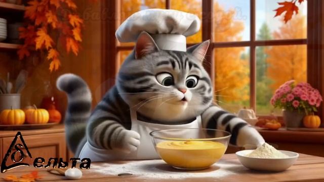 Весёлый котик показывает как готовить используя реальные рецепты. Qr code с полным рецептом приготовления в конце.