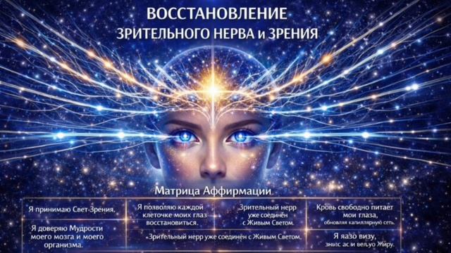 МАНТРА НА ВОССТАНОВЛЕНИЕ ГЛАЗНОГО НЕРВА И ЗРЕНИЯ ТГ канал Здравия здесь Я принимаю Свет Зрения. Я позволяю каждой клеточке моих глаз расслабиться и обновиться. Я доверяю мудрости моего тела и моего мозга. Мой зрительный нерв уже находится под поддержкой Живого Света. Я разрешаю восстановиться проводимости нервных импульсов, насколько это возможно для моего организма во Благо. Кровь свободно и мягко питает мои глаза, каждая капиллярная сеть очищается и обновляется. Я отпускаю напряжение, страхи и старые образы, которые мешали мне ясно видеть. Я вижу Мир через Любовь, Ясность и Благодарность. Мои глаза отдыхают, расслабляются и принимают энергию восстановления. Медицинские рекомендации, которые я выполняю, приносят максимальную пользу моему зрению. Я Благо Дарю свои глаза, свой мозг, свой организм за процессы регенерации, которые уже происходят. Я принимаю улучшение зрения, которое наилучшим образом возможно для меня по Замыслу моей Души. Это уже происходит здесь и сейчас, в едином поле со Вселенной, во Благо мне и всему Миру. КАК ПРАВИЛЬНО ПРИМЕНЯТЬ МАНТРУ НА ВОССТАНОВЛЕНИЕ ЗРИТЕЛЬНОГО НЕРВА И ЗРЕНИЯ 1. Только настоящим моментом Не произносить: будет, станет, поможет. Только здесь и сейчас, уже происходит. Это снижает сопротивление мозга и запускает нейропластику. 2. 3 режима применения Утро - активация (3–5 минут) сидя или стоя, глаза открыты, взгляд на горизонт. Цель: включить мозг - зрение - нерв Вечер - восстановление (5–7 минут) сидя или полулёжа, либо лёжа, глаза закрыты, дыхание спокойное. Цель: регенерация и очищение образов Перед сном - нейропластичность. Просто пройди текст внутренне. Во сне мозг переносит это в нейронные сети зрения. 3. Голос обязателен: Не читать про себя. Голос - это вибрация, дыхание, внимание и память. Голос включает лимбическую систему, а она регулирует зрение. 4. Телу нельзя давать команды насилия Правильно: отлично, доверяю, принимаю, разрешаю, во Благо, настолько, насколько возможно для организма. Это снимает сопротивление гиппокампа - и тело начинает делать работу. 5. Связка глаза, зрительный нерв, мозг. Главная цель мантры: провести сигнал, убрать нейроспазм, дать кровь и питание, обновить капилляры. Поэтому хорошо, если время от времени ты: раскрываешь глаза, смотришь вдаль, переводишь взгляд ближний - дальний. Это создаёт тренировку аккомодации. 6. Не подавлять медицинские назначения: Мантра идеально поддерживает: капли, витамины, массажи, медикаментозную терапию, офтальмологическое восстановление. Медицинские рекомендации, которые я выполняю, приносят максимальную пользу моему зрению. Это снимает конфликт мозга, он не блокирует лечение. 7. Образ всегда через Любовь, Ясность и Благодарность. Нельзя работать страхом, борьбой, насилием. Правильно: отпускаю напряжение, страхи, старые образы. Это переписывает зрительные шаблоны в коре мозга. 8. Не сравнивать и не ждать: Не ставить сроки. Не ждать результатов. Мозг делает лучше, когда нет: тревоги, контроля, ожидания. 9. Минимум 21 день, максимум без ограничений: 21 день - чтобы мозг признал новый шаблон зрения. 90 дней - чтобы это стало нейронной нормой. Но можно и дольше, сколько хочешь. 10. Самый сильный эффект сочетание: голос, дыхание, открытые глаза, Благодарность, принятие, отсутствие насилия, во Благо. Это золотая формула регенерации. КОГДА НАИБОЛЕЕ СИЛЬНО РАБОТАЕ