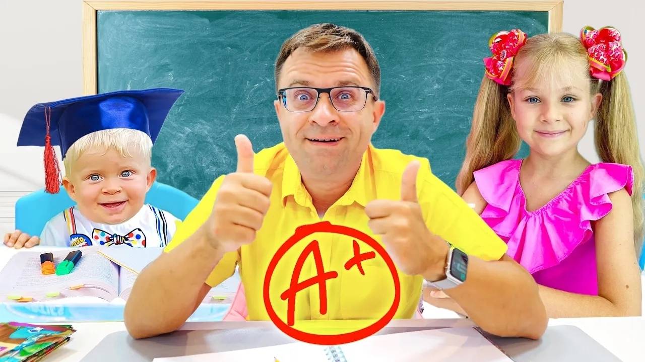 Диана и Рома играют в школу. Оливер - новый ученик