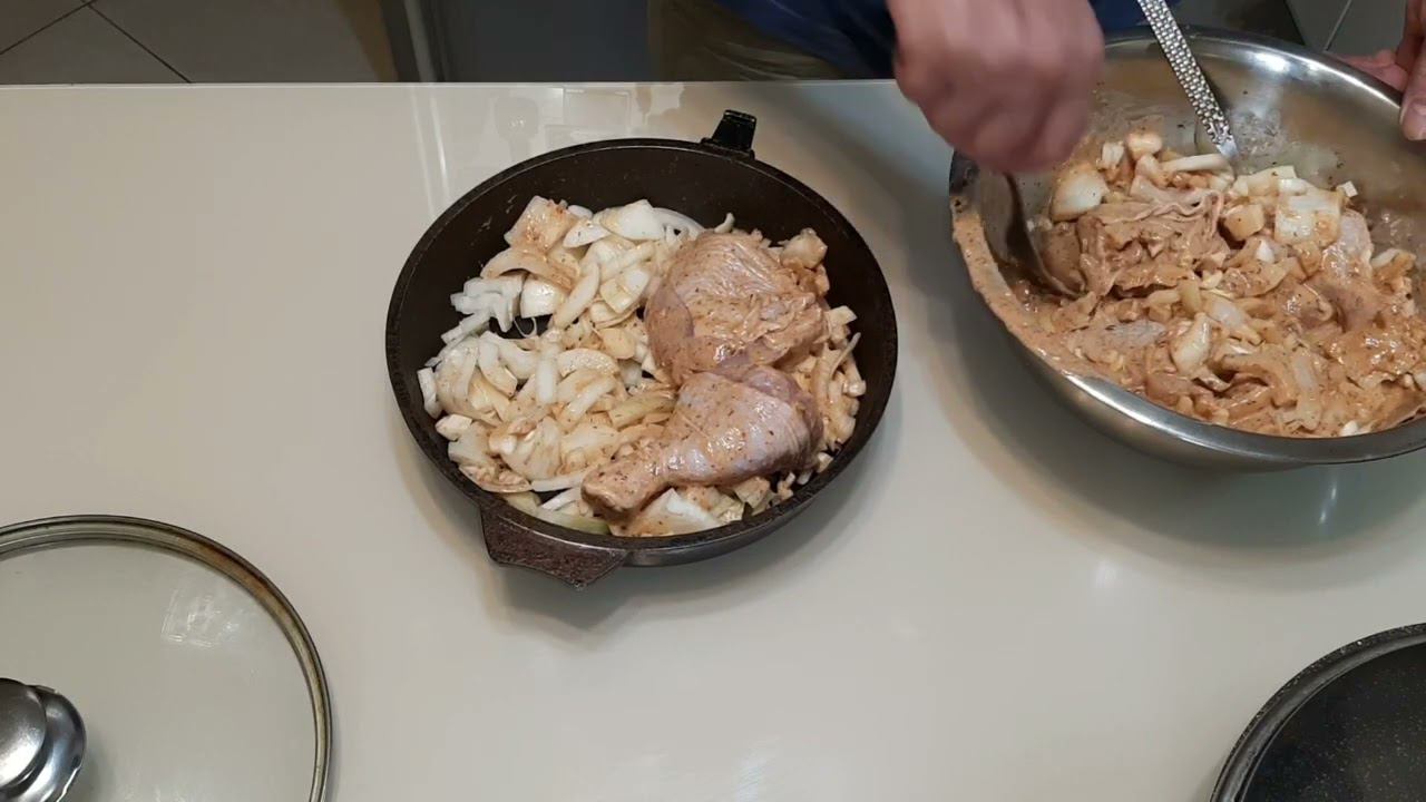 0,5 кг куриных ляшек, 3 луковицы. Соус: 2 столовых ложки соевого соуса, 1 столовая ложка домашнего майонеза (или 2 покупного), 2 столовых ложки томатного соуса, 5 столовых ложки молока или кефира, 1 чайная ложка прованских трав, 1 чайная ложка специй для мяса, 2 столовых ложки 9 % уксуса. Бёдра замариновать на 0,5 час. Затем выкладываем в форму накрываем фольгой и на один час отдыхать в духовку прогретую 180 градусов. Тем временем отвариваем 400 граммов макарон ( на 4 человека). Готово! выкладываем макароны на них лук и бёдра , подаём к столу. Приятного ужина! А вкусно -то как!!! Подпишись и лайкни!