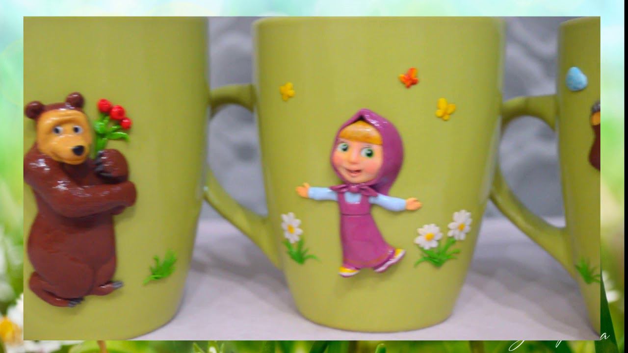 Кружки с полимерной глиной маша и медведь