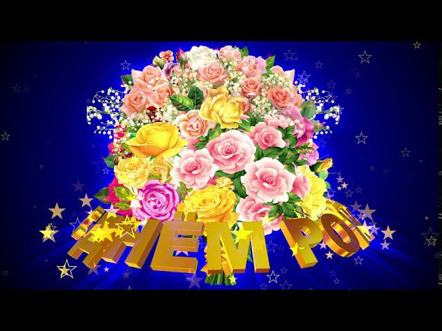Шикарный футаж С ДНЁМ РОЖДЕНИЯ. БУКЕТ РОЗ на тёмно-синем фоне с эффектом звёзд. Вариант 3