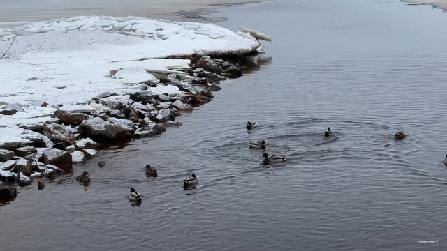 Юг Карельского перешейка Финский залив. Зимующие утки (кряква).