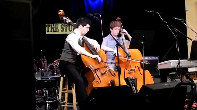 My Double Bass student Josh Kurisko plays the bass part of the J.S. Bach chorale Warum betrubst du dich, mein Herz, BWV 138, and I ( Chris Spendley ) play the soprano part on a borrowed bass. This was at a recital that I put on at The Studio of Long Valley that featured all of my students at Valley Music Center in Long Valley, NJ where I teach. His mother was kind enough to record it on her phone and share it with me. Josh is very talented, so I decided to post this, raw though it may be. The translation of the chorale's title is "Why do you trouble yourself, my heart". It is for four voices, and I've done it with four double basses, but it lends itself eloquently to two basses. It can be heard here in four parts, played my double bass quartet from graduate school: http://www.youtube.com/watch?v=tWIuGDjg9tQ. Here is another four-part Bach chorale played by the John J. Cali School of Music Bass Quartet: http://www.youtube.com/watch?v=KoqSHG6FSpk.