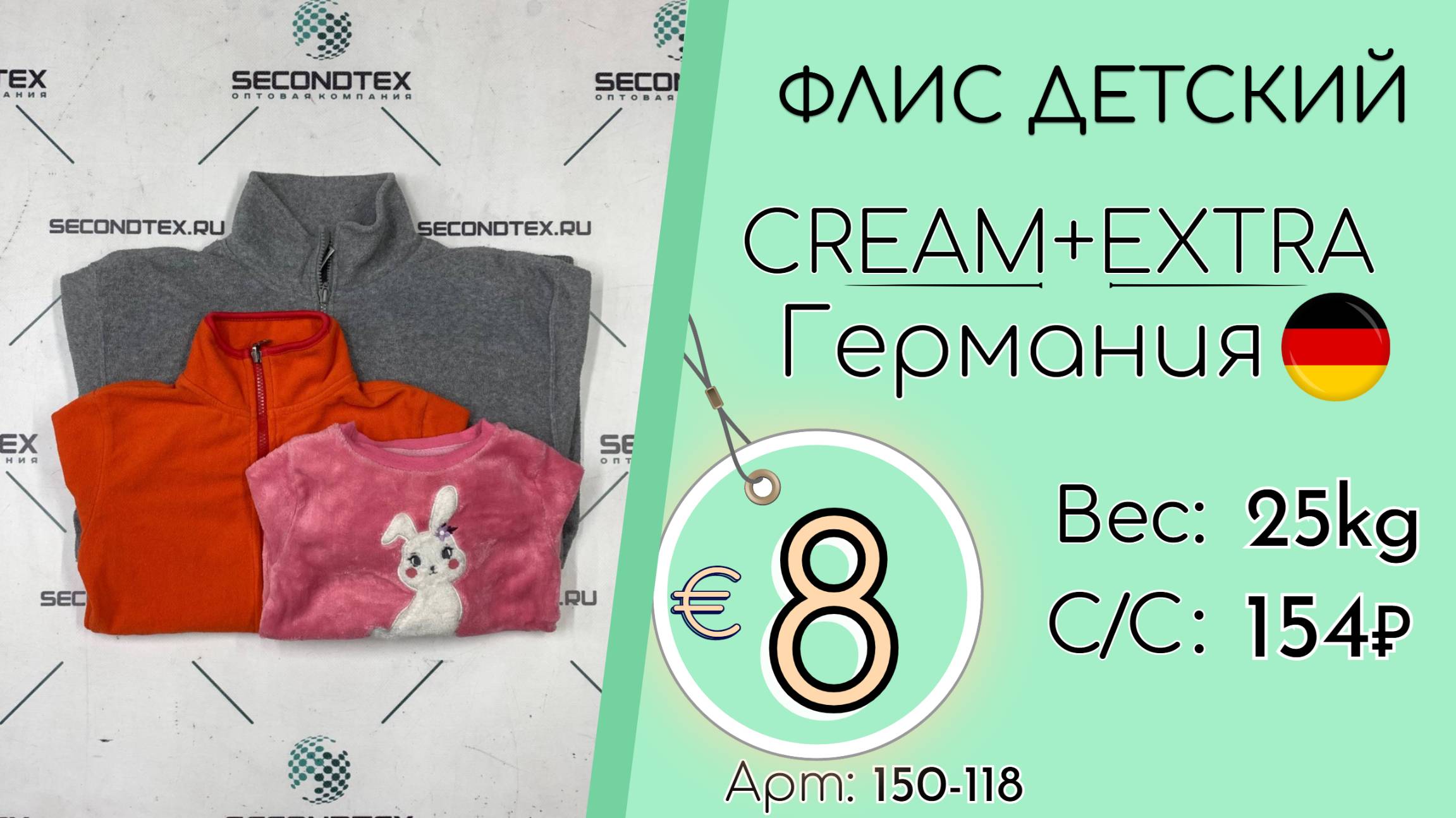 Страна: Германия Вес мешка: 25 кг Цена за кг: Евро 8 / Рубли 768 Цена за мешок: 19 200 руб. Себестоимость одной вещи: 154 руб. Кол-во штук: 125 шт. ____ 💰 Курс на дату съемки (08.11.2025): €1 = 96 Руб. (при наличных и безналичных платежах) 💳 €1 = 96 Руб. (при безналичной форме оплаты на р/с) Связаться с нами: +7(916)779-79-79 (WhatsApp, Telegram) Наш сайт: https://secondtex.ru Instagram: https://instagram.com/secondtex.opt Мы ВКонтакте: https://vk.com/secondtex