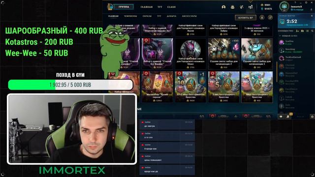 #forhonor #StreamRaiders #LeagueOfLegends Буду очень признателен за поддержку рублём - http://www.donationalerts.ru/r/immortex (Озвучка сообщения от 20 руб) Заказ музыки - 50 руб http://www.donationalerts.ru/r/immortex Остальной прайс: Заказать своего персонажа - 100 руб (200 руб для LOL-a) Поиграть со стримером вне очереди - 150 руб Дуэль со стримером (Best of 9) - 300 руб Продлить стрим на час - 300 руб Заказать любую игру на стрим (2 недели) - 5000 руб ___________________________________________________________________ Подписываемся на страницу ВК - https://vk.com/immortex Твич канал - https://www.twitch.tv/immortex Discord [Открытый] - https://discord.gg/veRd9Ab Для того, чтобы поиграть со стримером (или просто общаться с подписчиками и быть полноценной частью сообщества), вам необходимо скачать программу Discord, присоединиться к группе по ссылке https://discord.gg/veRd9Ab и находиться в голосовом канале "Очередь". ___________________________________________________________________ Правила чата: Запрещено оскорблять участников данного чата (всем разборкам место в личной переписке); Запрещён бессмысленный спам; Категорически запрещена любая реклама; Категорически запрещена агитация в "кланы" и прочие секты; Запрещено оспаривание действий администратора и модераторов (заявки на разбан/размьют рассматриваются в личных сообщениях модерации); Запрещено обсуждение политики, религии; Запрещена провокация администрации в любом виде (бан мгновенно). ___________________________________________________________________ Теперь вы можете воевать плечом к плечу с бессмертной армией в игре Stream Raiders - https://docs.google.com/document/d/1c... Multistreaming with https://restream.io/?ref=76ZBQ