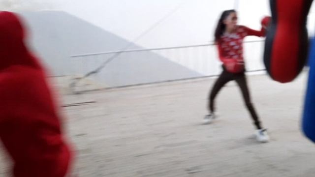 Работа на боксерском мешке . 04.02.21г. Лилит, Викторя, Лена