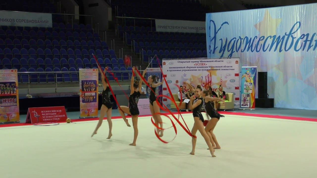 Выступление сборной команды города Тверь с мячами и лентами на открытом турнире Московской области "Успех" посвященный сборным командам московской области в групповых упражнениях по художественной гимнастике. Раменское. Дворец спорта "Борисоглебский" 6 февраля 2022г.