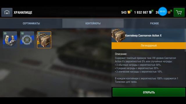 Wot Blitz открыл контейнер Caernarvon Action X а там!