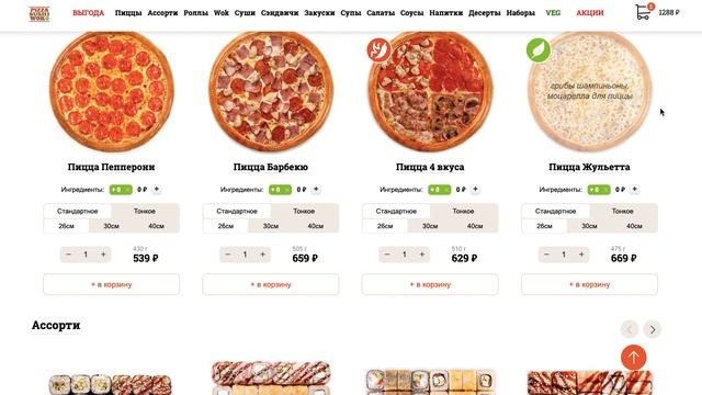 Как ввести промокод в Пицца Суши Вок?