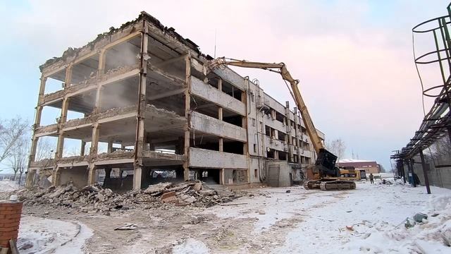 Демонтаж_стеновых_панелей_экскаватором_разрушителем