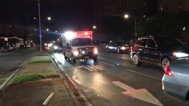 HERE YOU WILL SEE A WYCKOFF HOSPITAL EMS AMBULANCE RESPONDING ON LINDEN BOULEVARD IN THE BRONXVILLE AREA OF BROOKLYN IN NEW YORK CITY.