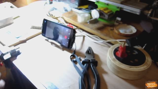 Чтобы телефон не сползал, делаем для него подставку из проволоки.