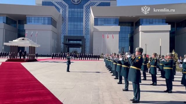 Кадры церемонии официальной встречи Владимира Путина Президентом Киргизской Республики Садыром Жапаровым Ссылка на первоисточник: https://t.me/news_kremlin/6702 Лицензия: Creative Commons Attribution 4.0 International Автор видео: Пресс-служба Кремля.