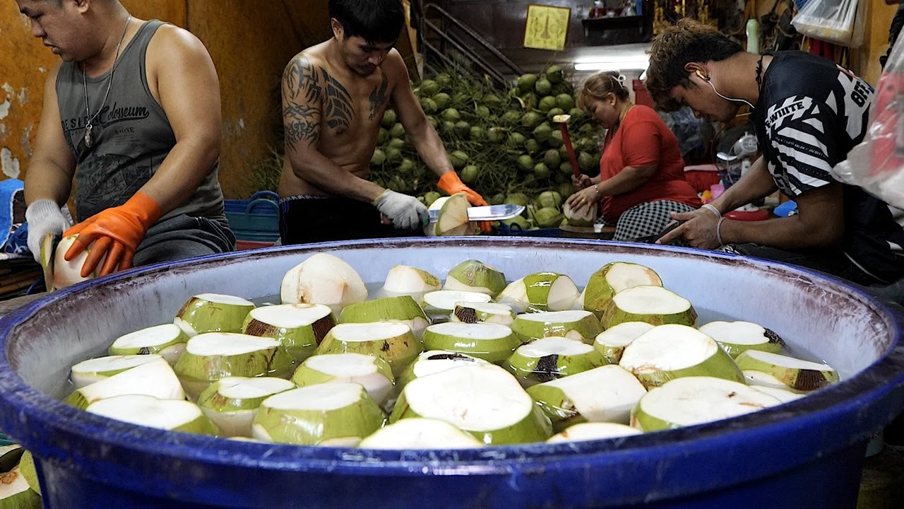 Мастерство резки кокосов! Приготовление кокосового сока — уличная еда Таиланда