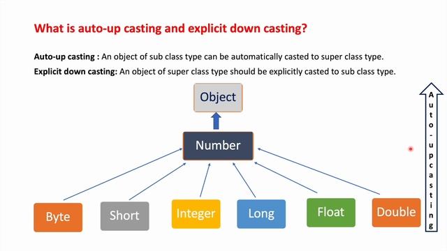 What is auto up casting and explicit down casting in java?