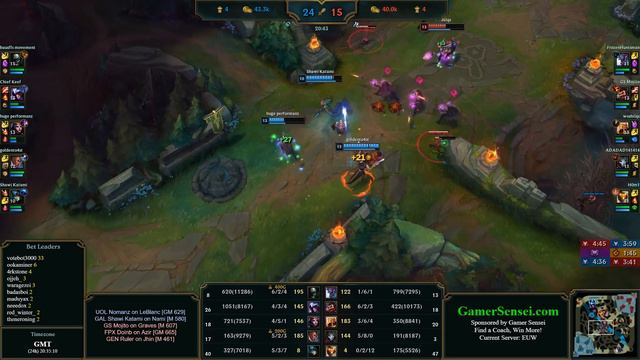 Watch GAL Shawi Katami, GS Mojito, FPX Doinb, GEN Ruler, OGB Homi, Nomanz, Nomanz, Nomanz in solo queue