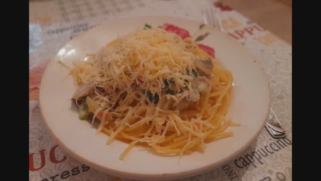 Паста с беконом и грибами