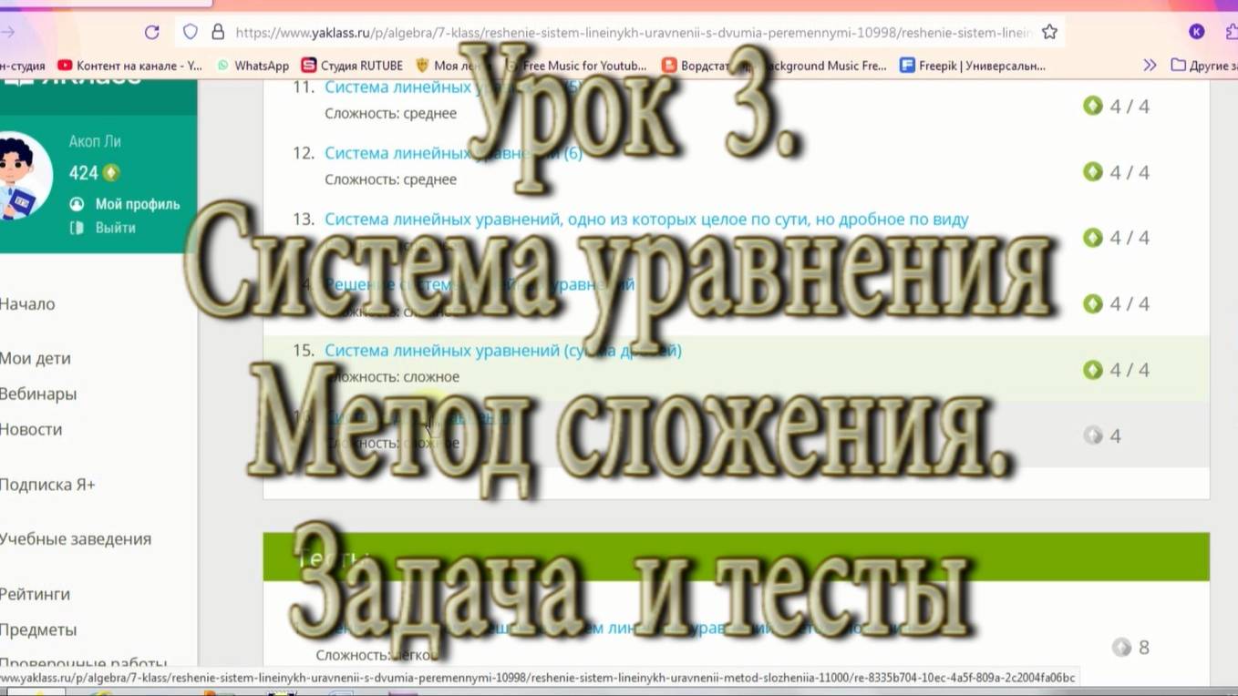 задача и тесты к уроку 3(Система уравнений с 2-я неизвестными)