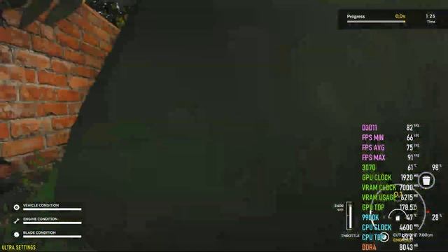 Max Settings ( 00:00 ) Low Settings ( 02:27 ) • CPU: Intel i9-9900KF 4.6GHz (1.18V) [4.7GHz=BSOD] • CPU Coller: SilentiumPC Navis RGB 280 (1012RPM) • GPU: ASUS DUAL RTX 3070 8GB [0.937mV-1915MHz] (2570RPM) • RAM: Adata D10 32GB 3GHz CL 16/Trfc 525 • MB: ASRock Extreme 4 Z370 • PSU: Fortron RAIDER II 750W • MONITOR: Asus PG278QE 165Hz G-SYNC • CASE: Corsair Graphite 780T • OS: Windows 10 Home • HDD: Seagate BarraCuda - 1TB • SSD: Samsung 860 EVO 250GB • SSD: Kingston A2000 M.2 NVMe 500GB • Keyboard: Rapoo VPRO V700RGB Alloy • Mouse: SteelSeries Rival 3 • Headphones: Logitech G432 7.1 • Recording Software: NVIDIA ShadowPlay • Monitoring Software: MSI Afterburner • Edit Software: Sony Vegas Pro 17 Nvidia Driver: 471.11 Windows 10 Version: 21H1 / 19043.1165 ASROCK BIOS: 4.21B Windows Power Plan: HIGH PERFORMANCE Nvidia Resizable BAR: ON
