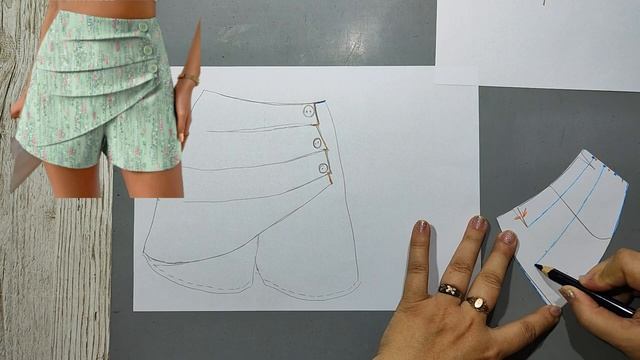 Моделирование. Шорты с драпировкой по полочке для всех размеров. Выкройка № 1166.