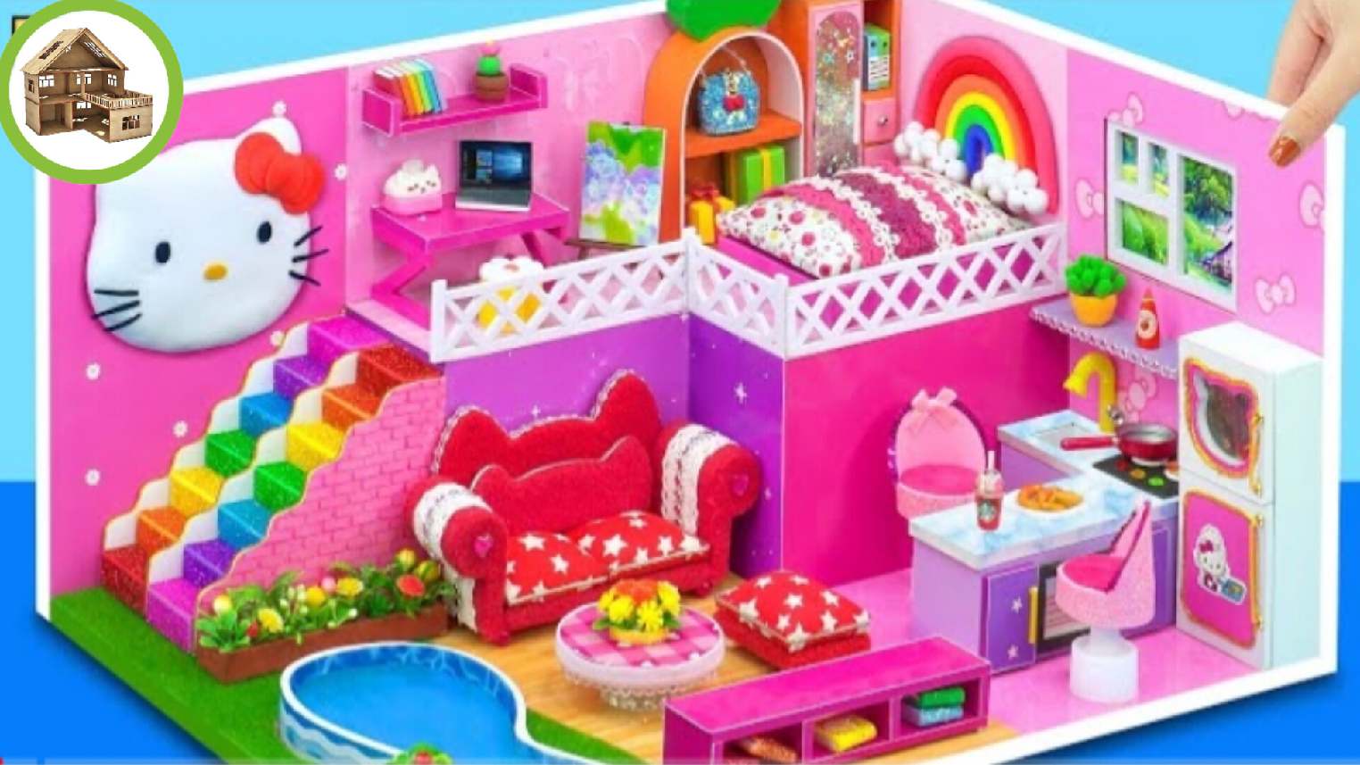Миниатюрный розовый домик hello kitty с 4 милыми комнатами из картона #65