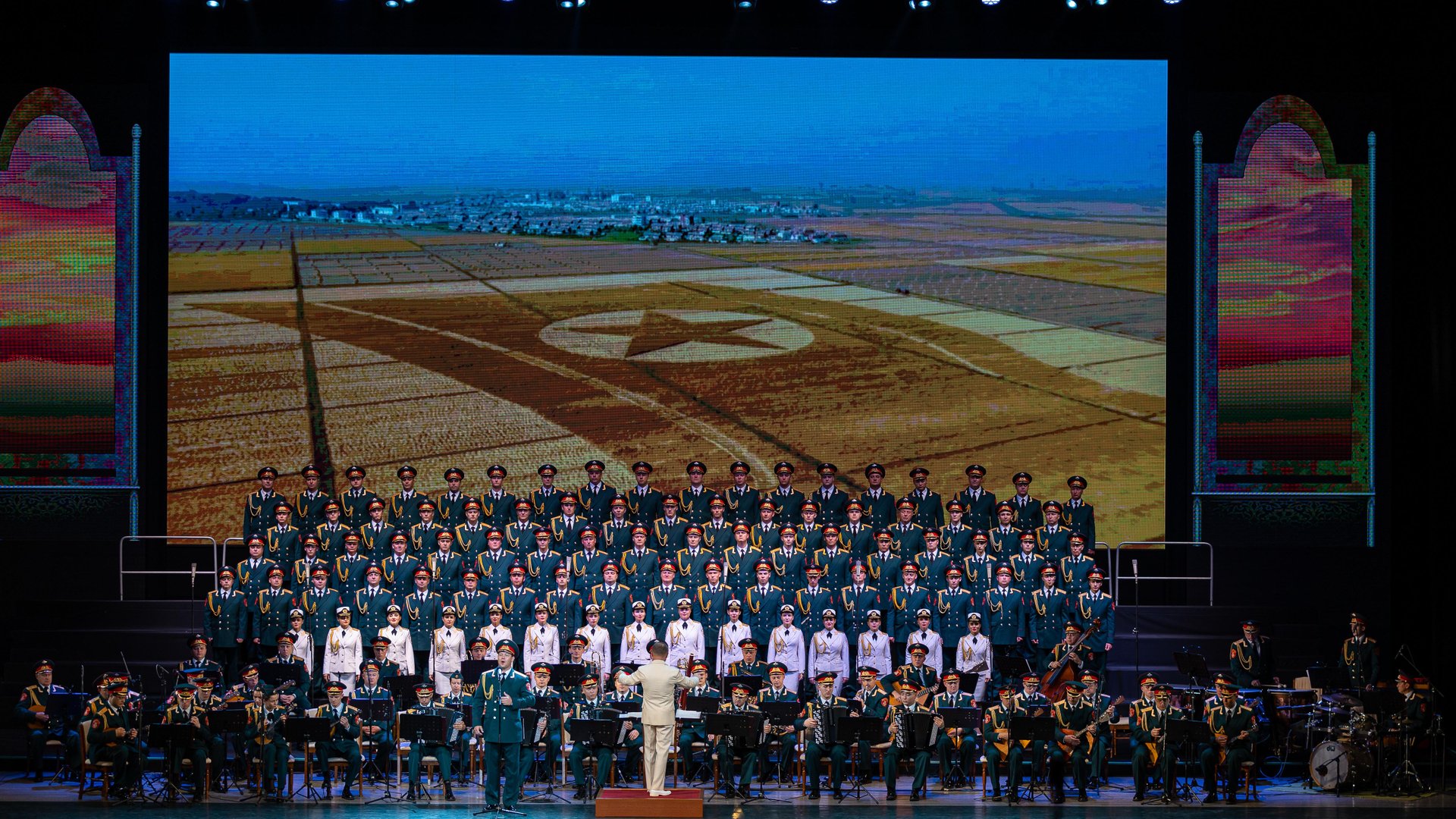 Музыка На Хва Ира, стихи Ди Ван Ю Академический ансамбль песни и пляски Российской Армии имени А.В.Александрова, солист — Александр Крузе, дирижёр – заслуженный артист России Николай Кириллов, начальник ансамбля – художественный руководитель, заслуженный артист России, народный артист Республики Северная Осетия-Алания, полковник Геннадий Саченюк Главный зал Восточно-Пхеньянского Большого Театра, Пхеньян, КНДР, 9 сентября 2023 года