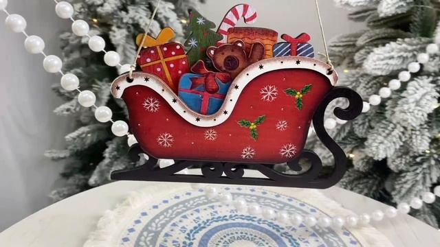 Ёлочная игрушка САНКИ ДЕДА МОРОЗА, дерево, 18 см, 53-9817