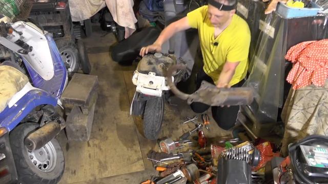 Снимаем мотор Honda Tact AF-24 Мистика