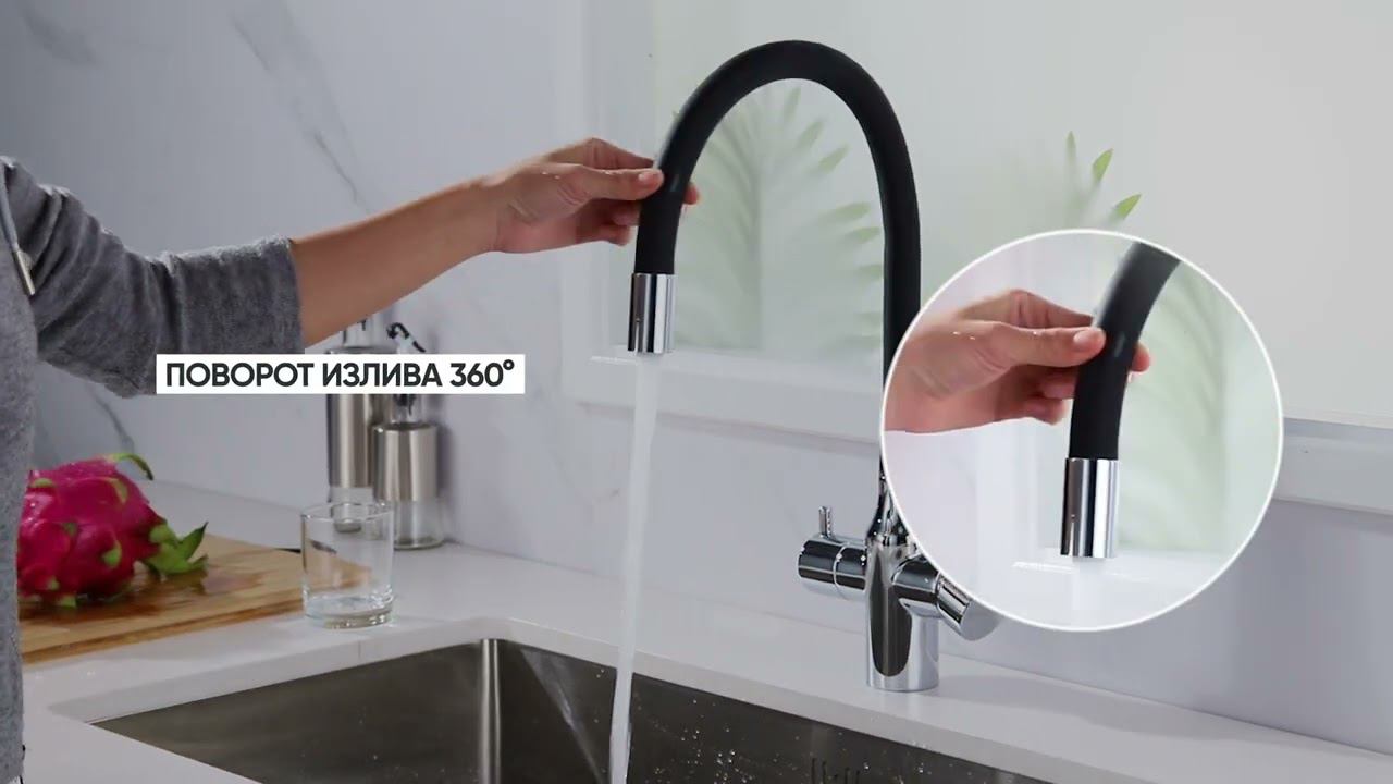 Смеситель Paulmark Salix Sa213419-CR для кухонной мойки, под фильтр, с гибким изливом, хром/черный